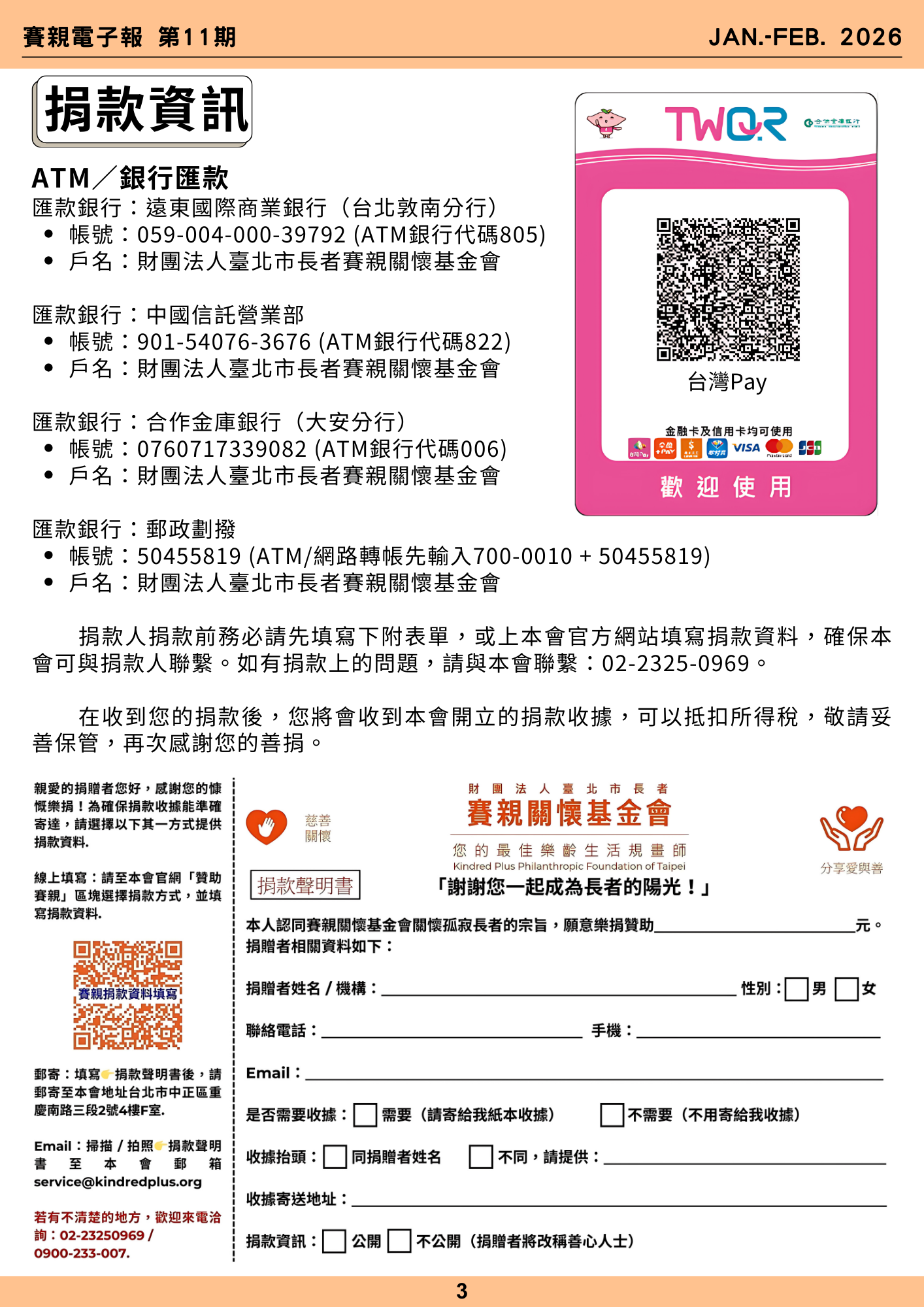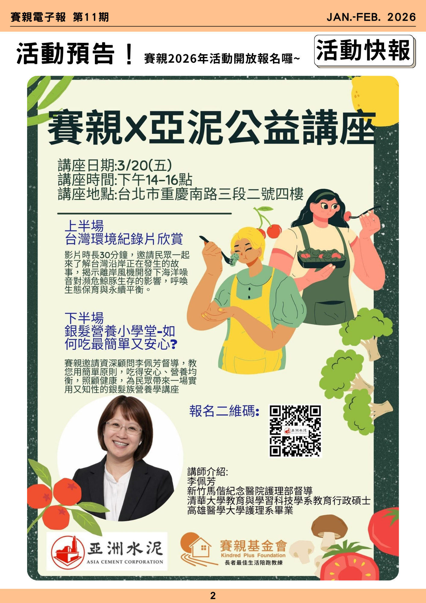 賽親電子報第十一期2026年1-2月出爐囉,快來看看賽親新的一年有什麼新的服務與活動吧!